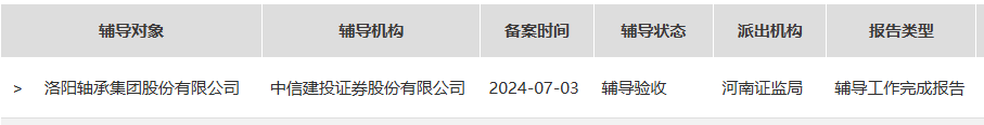 2024年7月,洛阳轴承集团在河南证监局进行上市辅导辅导备案。