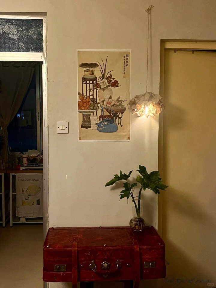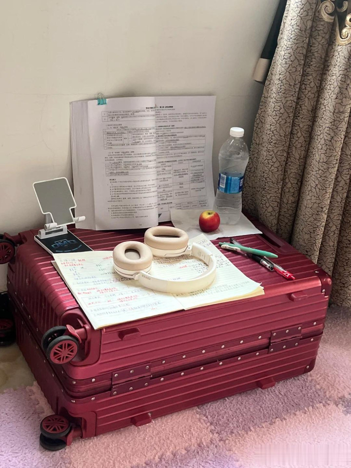 行李箱里可以正常收纳,又可以当书桌来用,顺便还美化了卧室,顺便又能省下一个书桌的钱。
