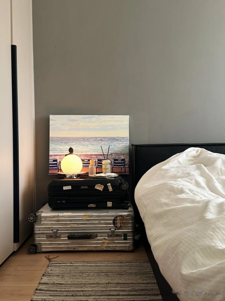 我们把行李箱放在床头,然后再搭配一个好看的链子,就变成了床头柜,而且根本看不出来它是一个行李箱,里面还可以收纳换季衣服,顺便又替衣柜分担收纳负担。