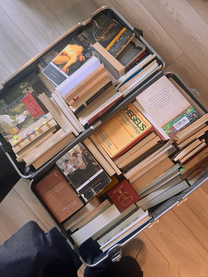 实在没地方放的时候,就可以把这些书全都塞进行李箱里,想看的时候再打开翻找就可以了。